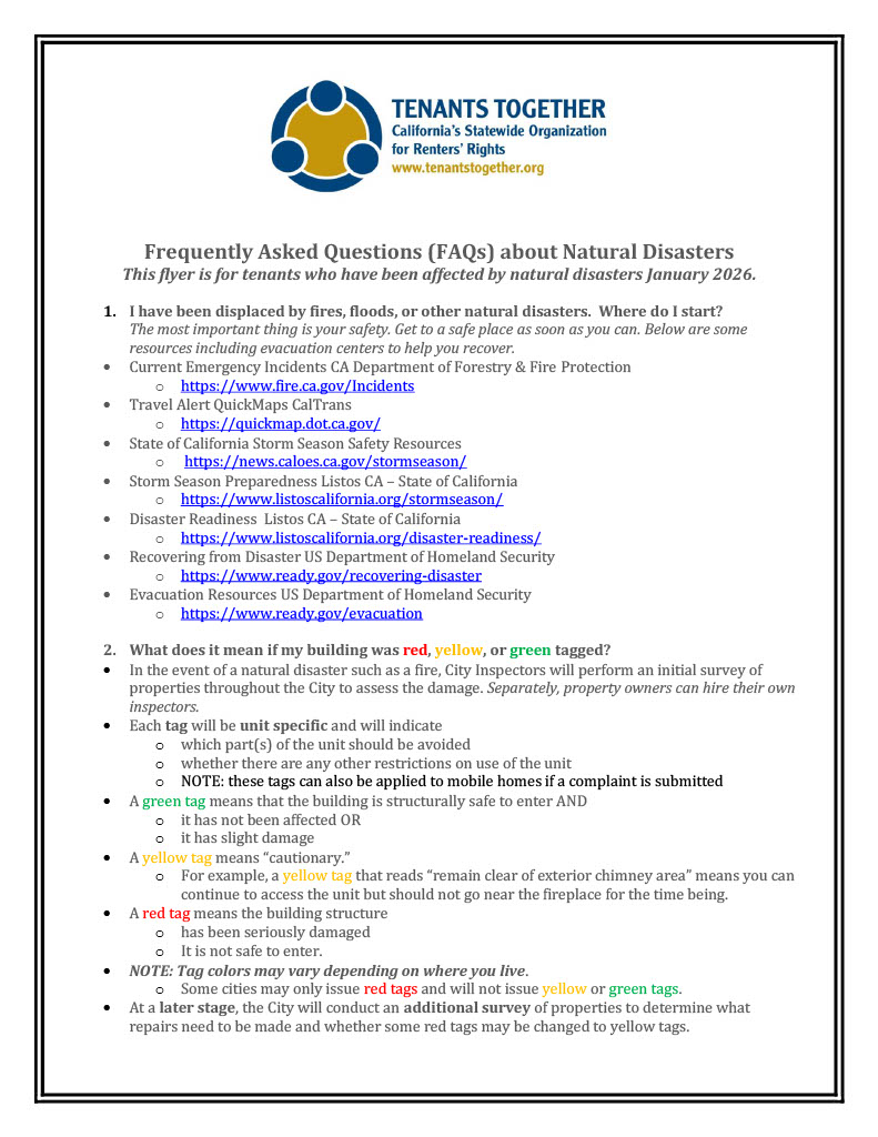 Review resources if you have experienced housing issues related to the 2026 Southern California natural disasters: